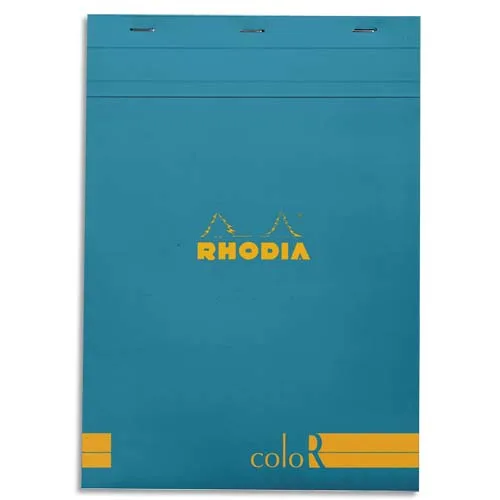 RHODIA Bloc coloR agrafé en-tête 21x29,7 (n°18) 140 pages lignées. Couverture rembordée turquoise