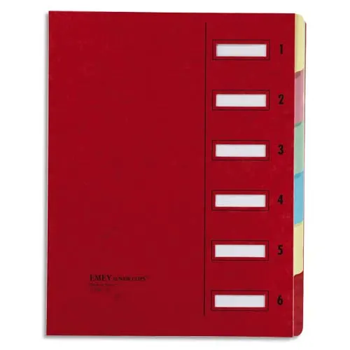 EMEY Trieur EMEY JUNIOR en carte avec système clip, 6 compartiments. Coloris rouge.