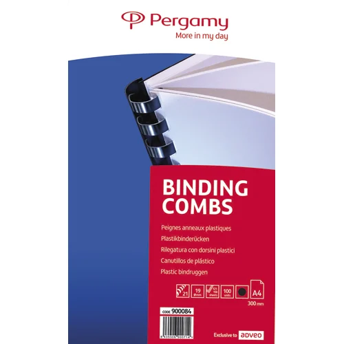 PERGAMY Boîte de 100 peignes anneaux plastiques 19mm Noir 900084